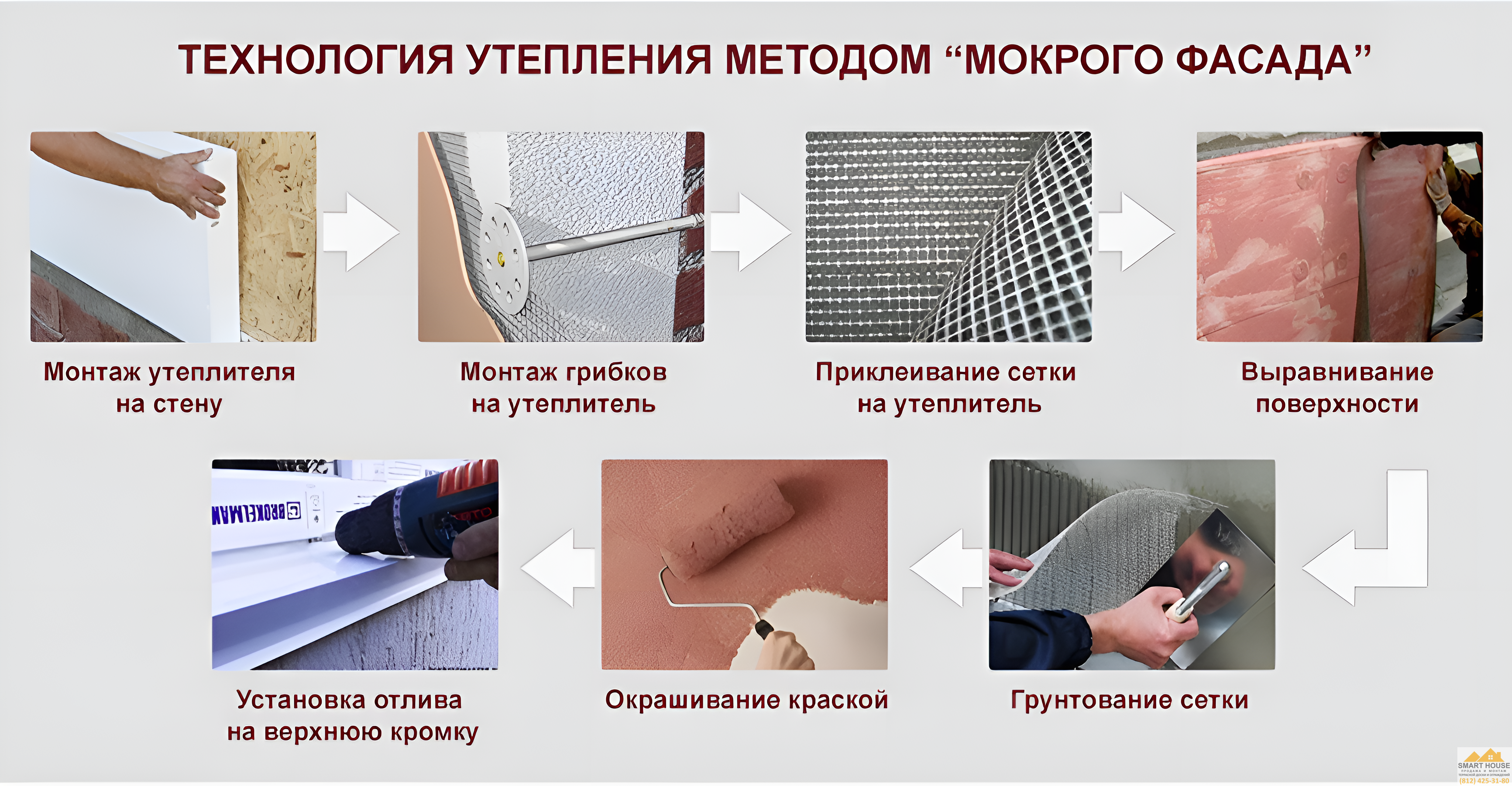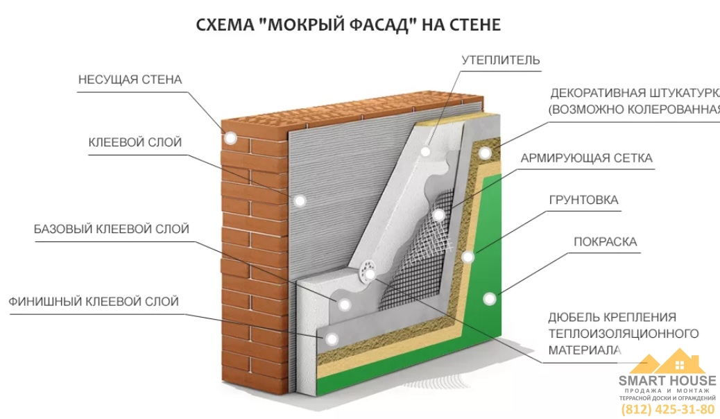 МОНТАЖ МОКРОГО ФАСАДА от SMART HOUSE ВКЛЮЧАЕТ В СЕБЯ:
