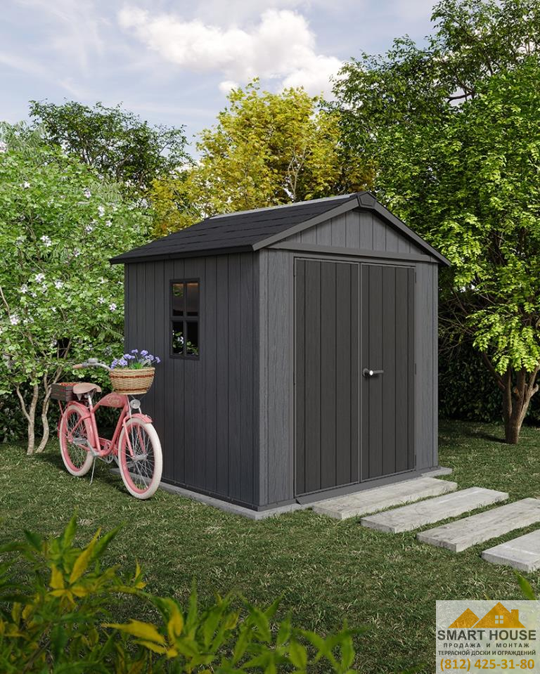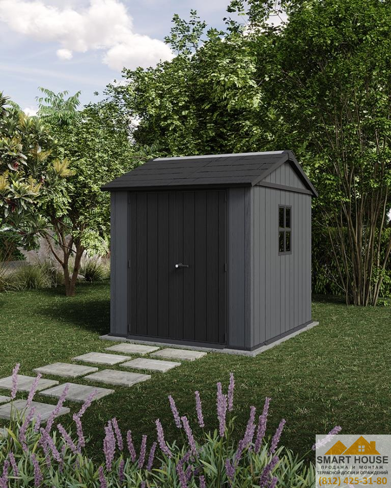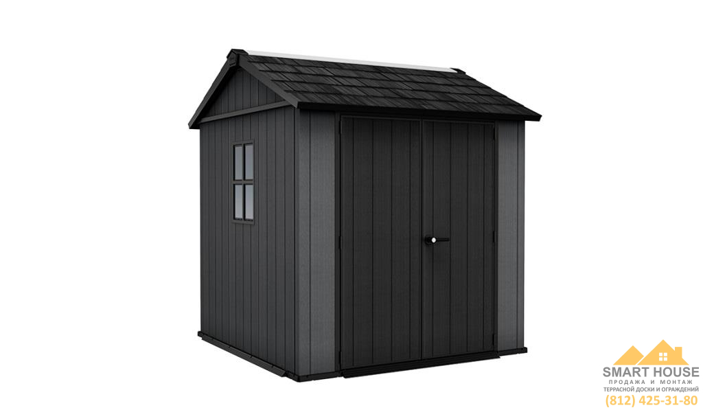 Привлекательный и крайне функциональный хозяйственный домик Newton 2.0 wide 7x7,5 устанавливает новый стандарт хранения садовых аксессуаров. Достоинства домика - это утонченный дизайн и традиционная деревянная отделка наружной поверхности, а также исключительная прочность и долговечность внутренней части. Укрепленной конструкции не страшен даже самый сильный дождь, ветер и снег. Пол без проблем выдержит вес газонокосилки и защитит ее от грязи и дождя. Окно по всей длине и встроенная вентиляция обеспечивают приток света и свежего воздуха. Newton 2.0 wide 7x7,5 сконструирован из панелей, изготовленных из самого современного материала Evotech+ – усовершенствованного композита, обеспечивающего продукции эстетичный вид настоящего дерева и не требующего ухода.