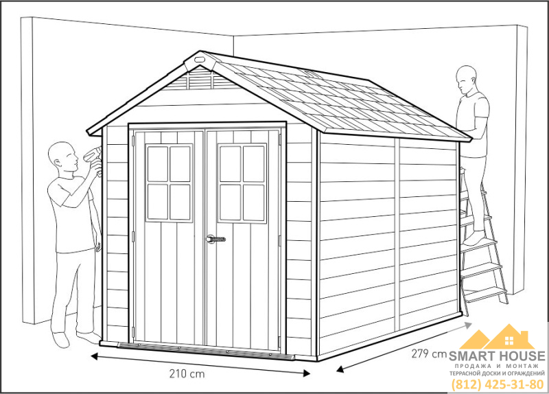 Внимание! Сарай рекомендуется ставить на подготовленное основание. Это может быть бетонированная, асфальтированная или выложенная плиткой (брусчатка/декоративный камень) площадка. Основание должно быть ровное по высоте. Площадка не должна иметь уклон. V